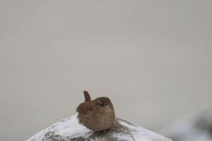 Mycket ljudlig trots sin storlek. Locklätet består av en serie knäppningar, medan oroslätet är metalliskt klingande. Häckar i en risbuske, rotvälta eller i en enbuske. Boet består av mossa med fjädrar som foder. Hanen bygger flera bon utan foder, men där han övernattar. Honan lägger 6-8 ägg i april-maj, som ruvas i 14-15 dygn. Två kullar per säsong förekommer.